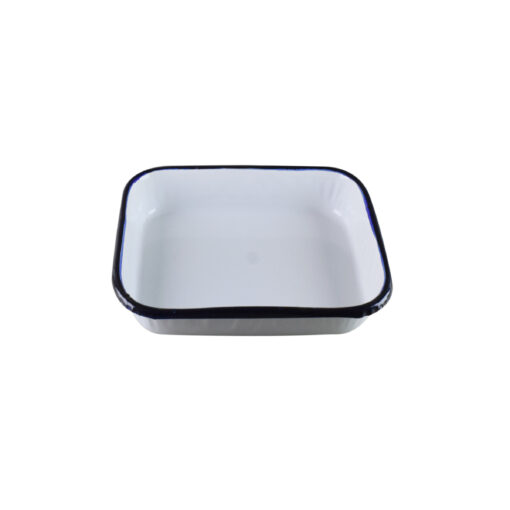• This enamel tray is resistant to rust, corrosion, and stains.